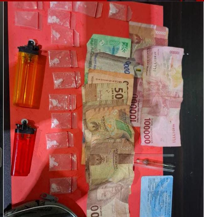 Saat dilakukan penyergapan, pelaku yang mengaku bernama HS alias Ucok Calok (41) tidak dapat berkutik. Dalam penggeledahan badan di lokasi pertama, petugas menemukan satu plastik klip bening berisi kristal putih yang diduga sabu sebagai barang bukti awal.